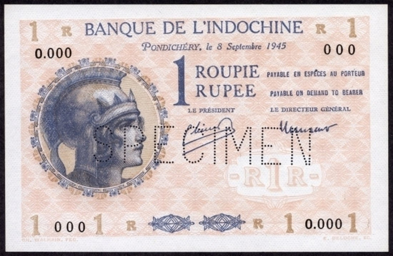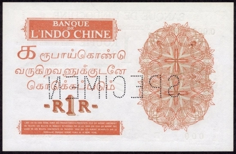 This bank note is part of the French India Banknotes series and is suitable for collection building, display, and general numismatic interest.