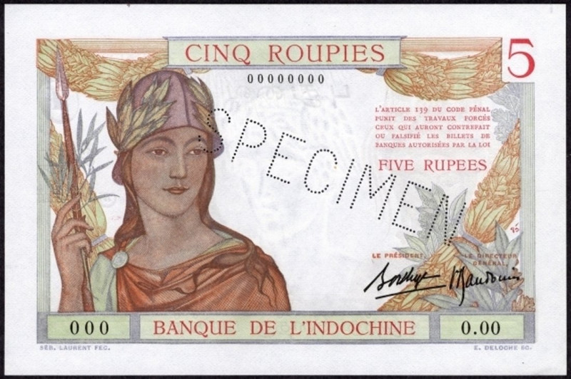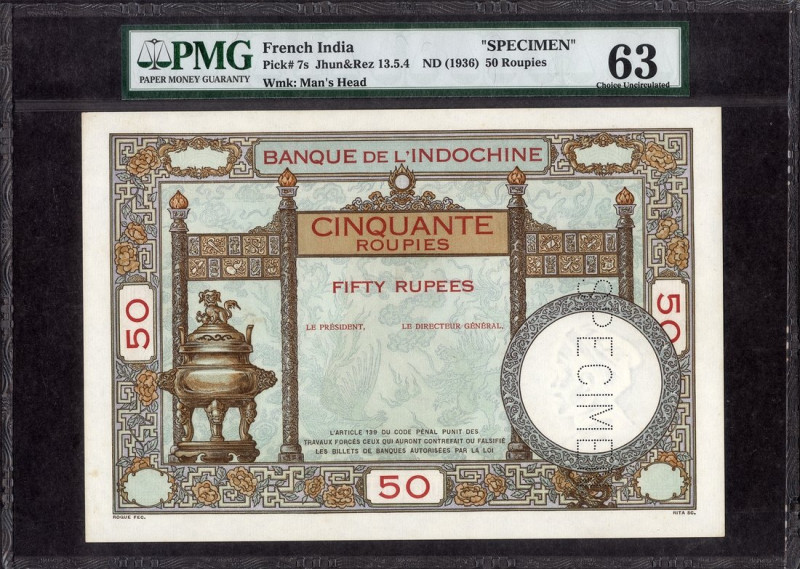 This bank note is part of the French India Banknotes series and is suitable for collection building, display, and general numismatic interest.