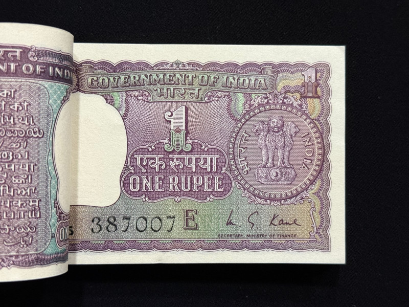 India, 1975 Rupee 1 Complete Serial Bundle, Sign. M.G. Kaul, Inset G, Pick# 77p, (R95 281801)
