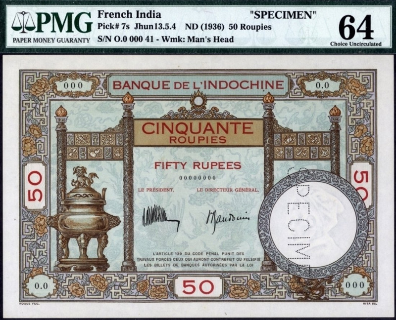 This bank note is part of the French India Banknotes series and is suitable for collection building, display, and general numismatic interest.